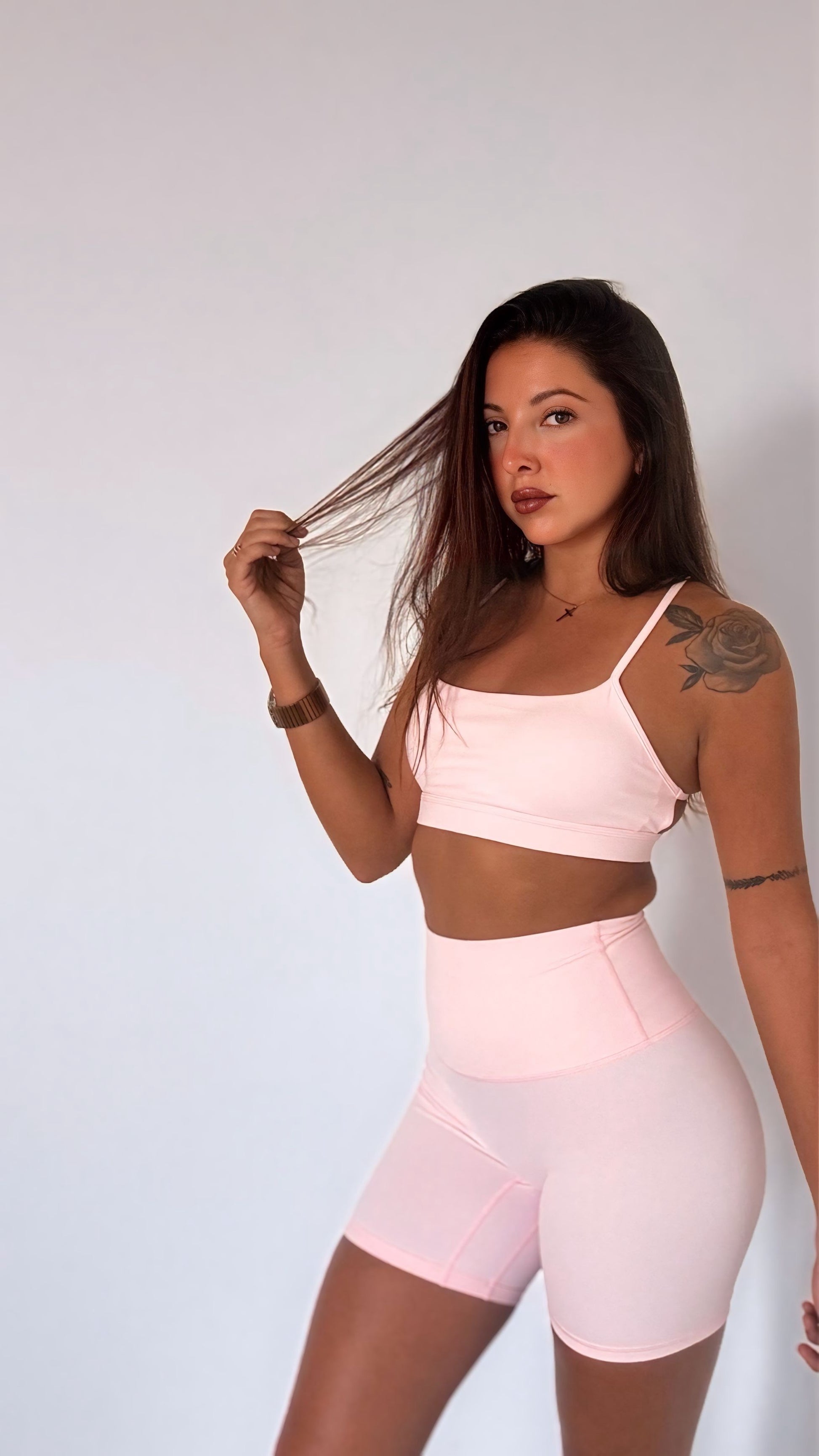 Scopri la combinazione perfetta tra comodità , stile e un tocco di sensualità . Questo completo include un top sportivo con effetto push-up , scollo a U e schiena scoperta, che valorizza la tua figura con eleganza, e shorts a vita alta con cintura regolabile , che modellano la silhouette con delicatezza.