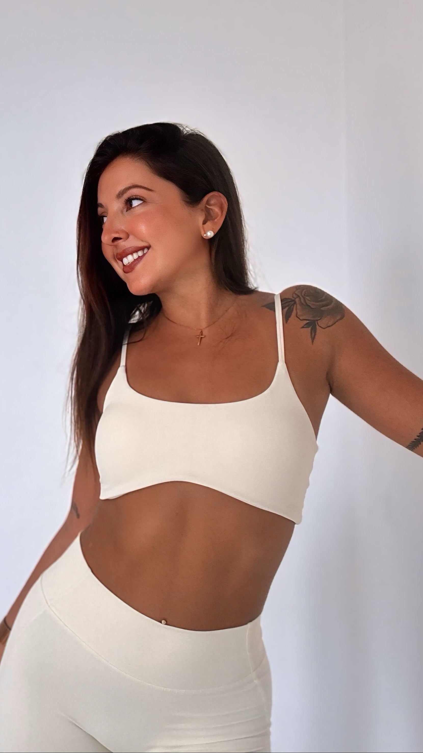 ✔ Top con push-up e pantaloni a vita alta